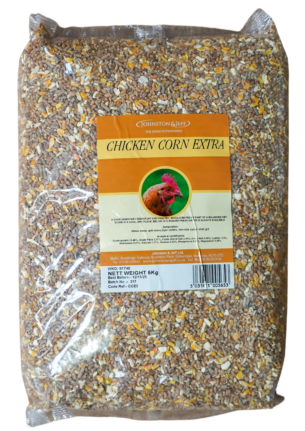 A wonderful all-year round feed for your poultry to stay happy and healthy. Johnston & Jeff’s Chicken Corn Extra contains added layers pellets, in order to provide important nutrients, and hen-size oystershell grit which is essential in providing calcium.