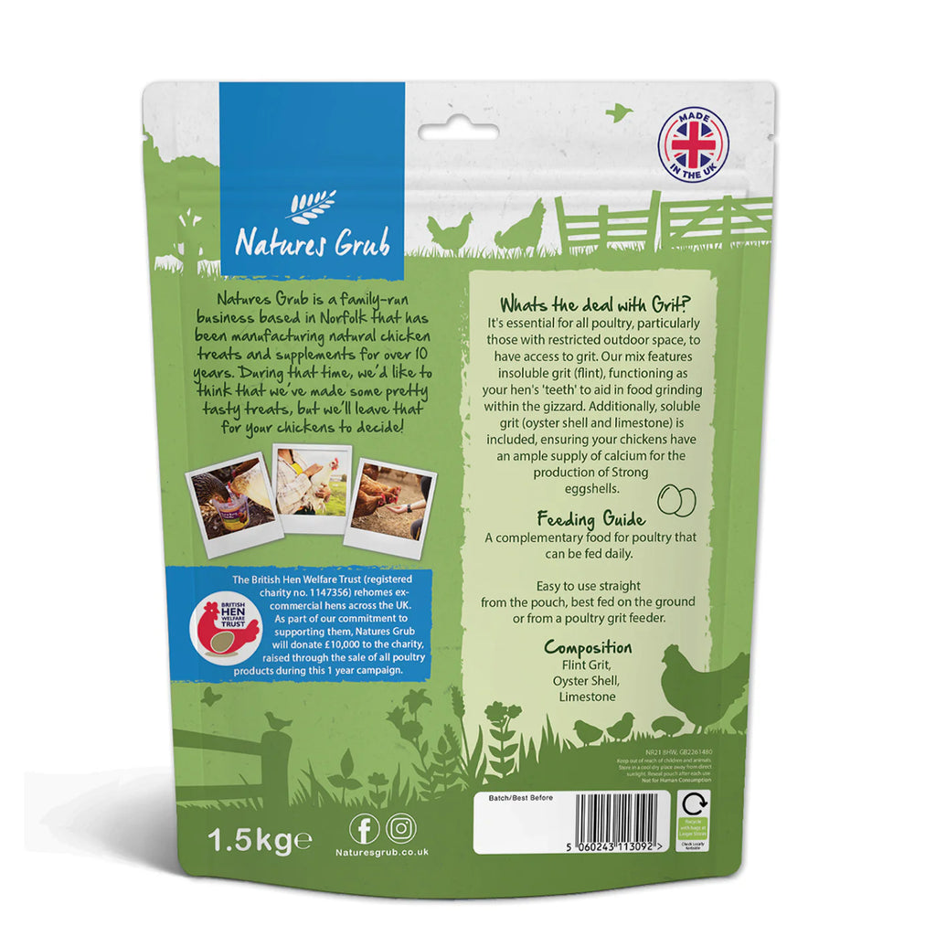 Natures Grub Mixed Grit is a balanced blend of Oyster Shell and Hen Grit, essential for the health and well-being of your poultry. Oyster Shell supplies vital calcium, crucial for strong eggshells and overall bone health in chickens. Meanwhile, Hen Grit plays a crucial role in the digestive process, aiding in the grinding of food in the crop to ensure efficient digestion.With Natures Grub Mixed Grit, you can provide your birds with the essential elements they need to thrive, from robust egg production to optimal digestion.
