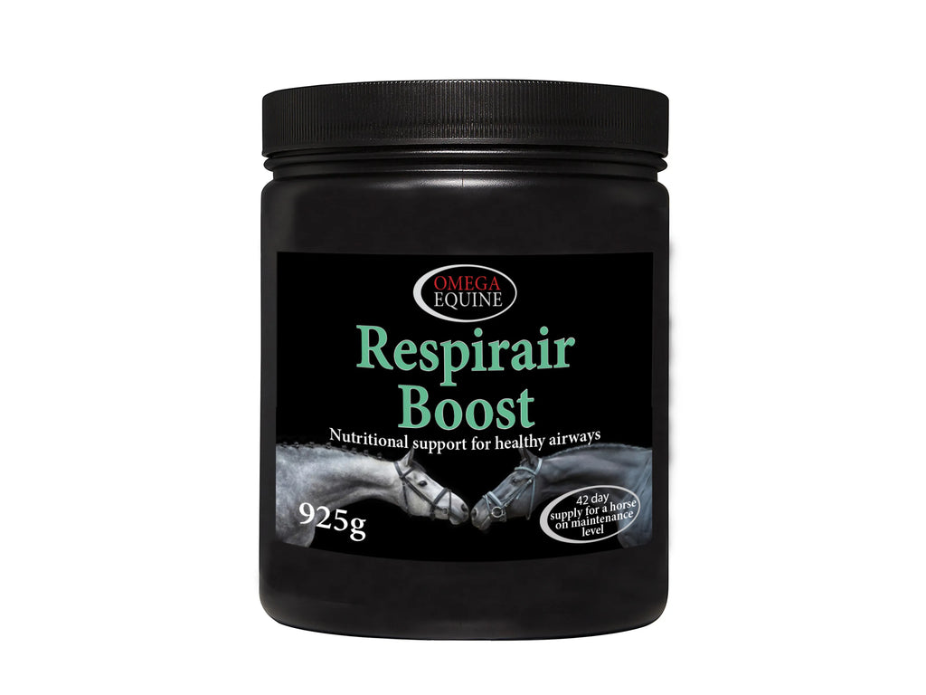 Omega Equine Respirair Boost is a targeted supplement designed to support healthy respiratory function and clear airways in horses. Whether in hard work, stabled environments, or during seasonal changes, it provides natural nutritional support to keep the respiratory system in peak condition.