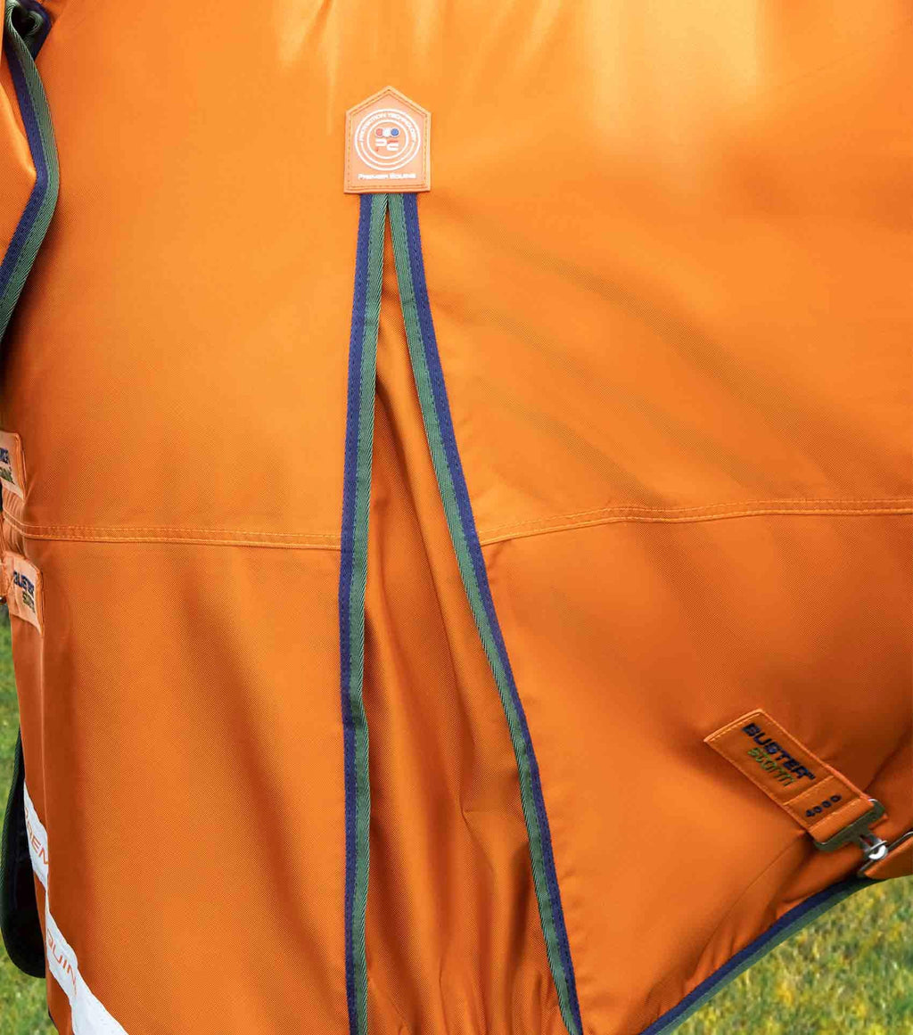 Designed with meticulous attention to detail, the Buster Storm 400g Combo Turnout Rug is constructed seamlessly into an integrated neck cover, allowing the neckline to fall comfortably in front of the shoulder, helping to reduce wither pressure and prevent rubbing. Evolving with time, the Buster now features an extra-high patented elasticated shoulder gusset, providing greater freedom of movement in the field. Reflective strips at the front and rear of the rug increase visibility in low-light conditions. The strategically placed chest clip closures, surcingle bars, and hardware are expertly crafted from high-quality stainless steel for long-lasting functionality.