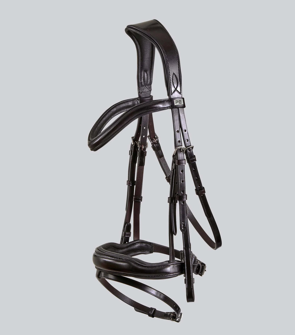 Constructed using high quality Italian leather this anatomic bridle has been carefully shaped to contour around the horse’s ears, nose and cheekbones in order to achieve a more comfortable and ergonomic fit. The anatomically shaped, padded poll piece is designed to distribute pressure over the less sensitive areas of the poll and away from the ears. The browband is also shaped to create definition and features a round raised design alongside soft padding.