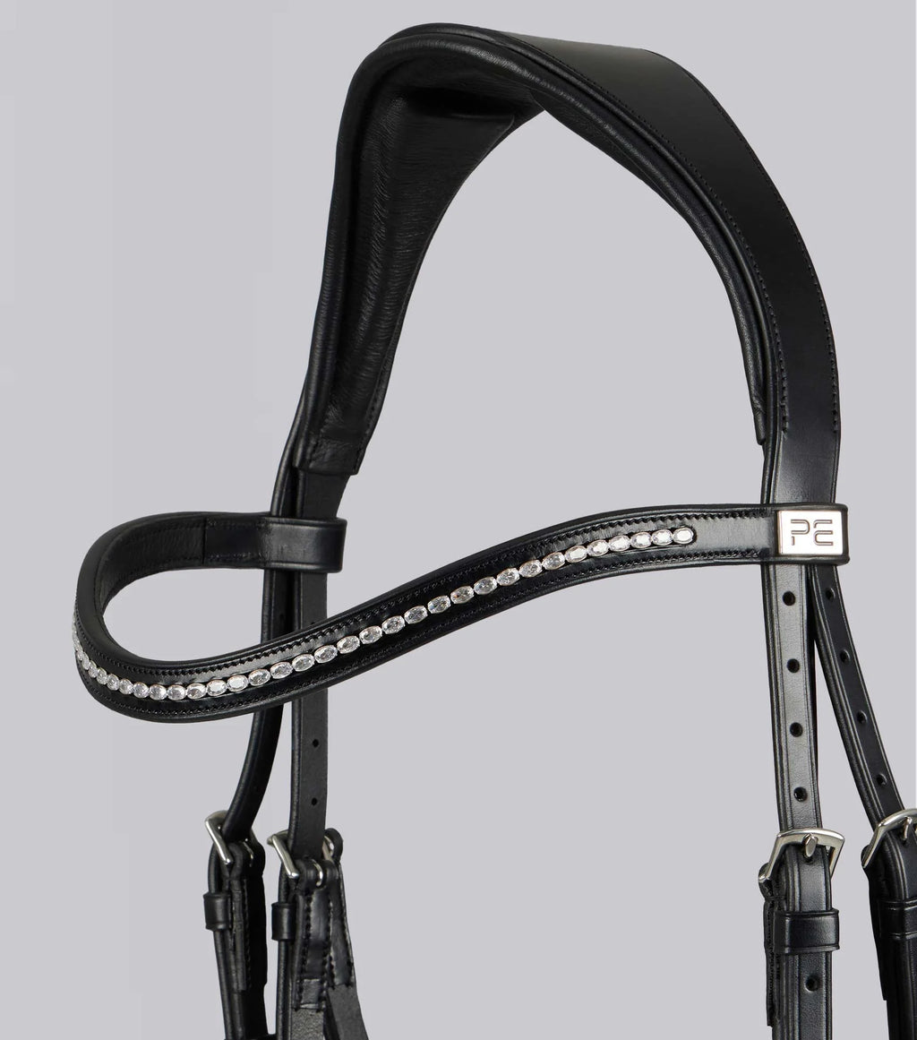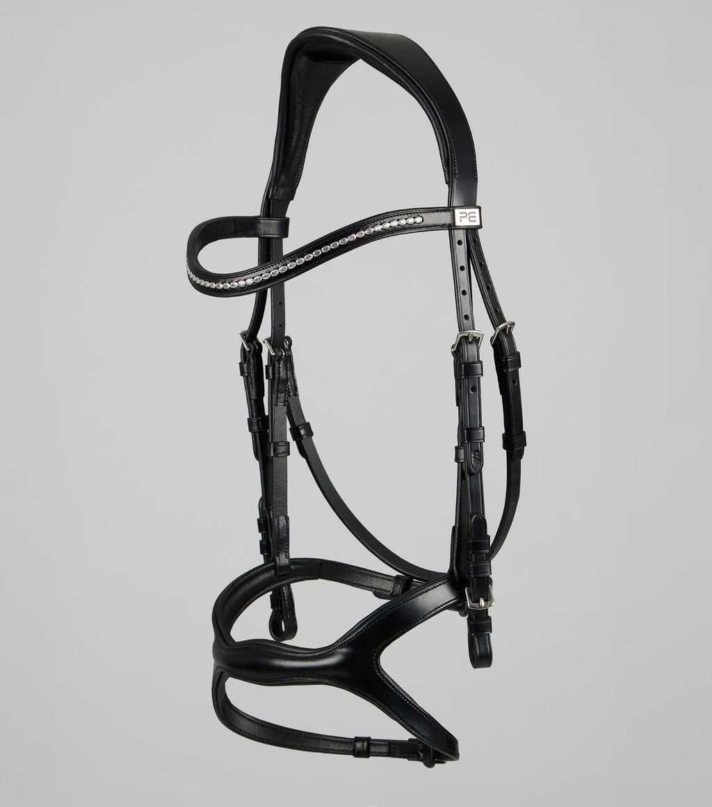 Adorned with a sleek chrome PE badge, the San Paolo features a stylish and distinctive touch, enhancing the bridle’s sophisticated appearance and serving as a mark of quality and luxury, reflecting on the meticulous design and construction of the bridle.