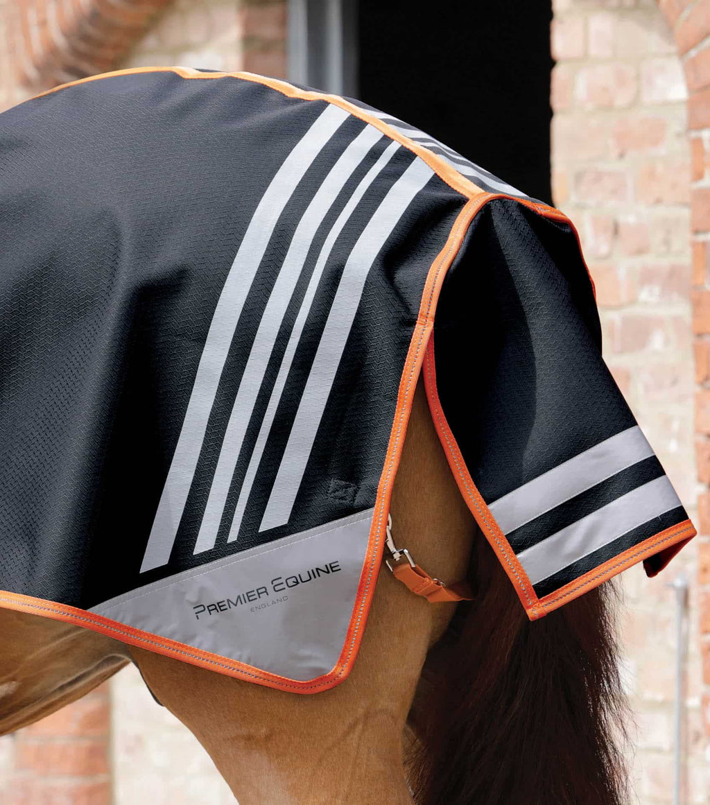 The Stratus Exercise Sheet is crafted from a waterproof 1200D diamond ripstop outer with a 280g bonded stay-dry lining. Lightweight and breathable, this sheet will help wick away moisture whilst keeping your horse warm and dry in cold or bad weather conditions. The design features various reflective elements, including our signature ‘Stratus’ reflective strips on both sides, as well as the tail flap and binding, helping to improve visibility when out in low light conditions. Cut to fit around the saddle, the rider is easily able to put on or remove this sheet whilst on board. Eye catching, innovative and colourful, this reflective exercise sheet is perfect for hacking out in dull conditions or schooling in cold/wet weather.
