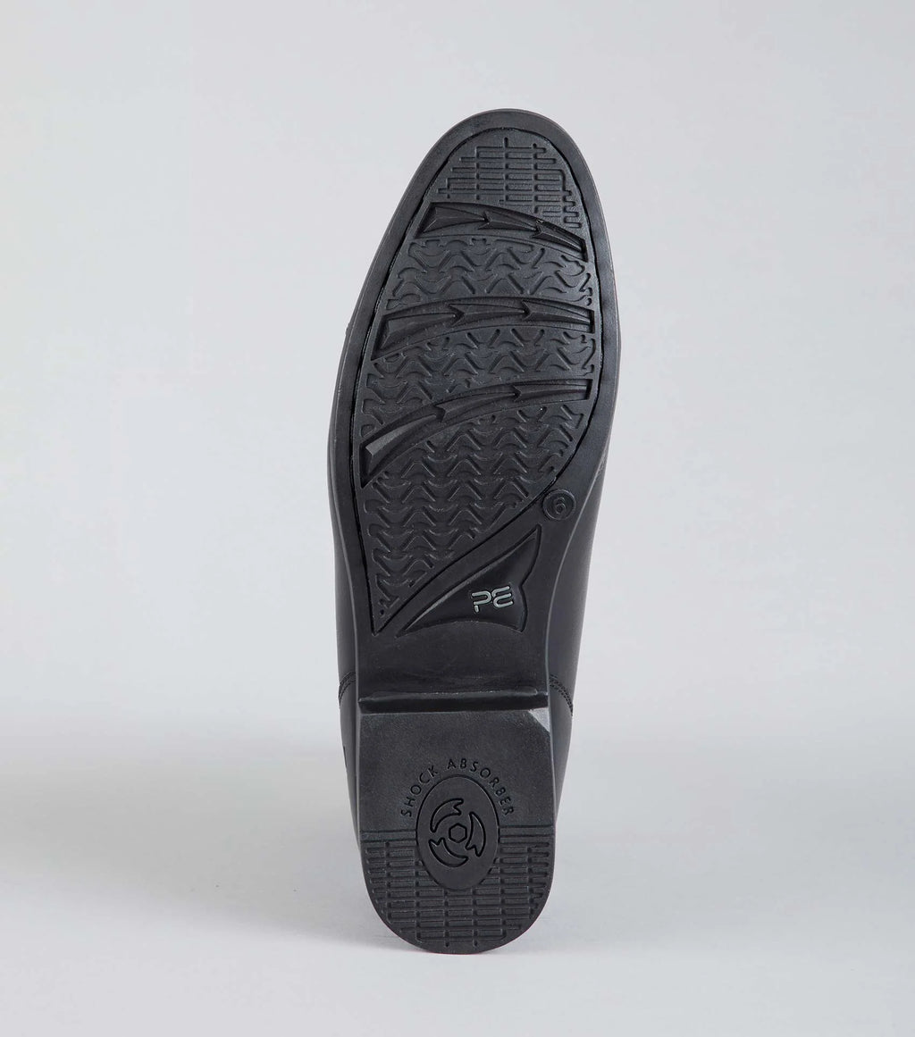 Elastic side panels improve comfort and flexibility around the ankle, making these leather horse riding boots perfect for use everyday. At the heel of the boot you will find two-point spur rests above the embossed PE branding on the outside of the boots. To provide lasting comfort, the moulded anti-slip sole has been designed to support the heel, bridge and ball of the foot whilst absorbing shock and impact from walking. Finished with a subtly branded pull tab, these comfortable short riding boots are perfect for your seasonal equestrian wardrobe.